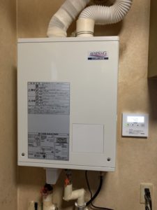 「朝からボイラーが使えない」とご連絡を頂きすぐに訪問し現調したところ使用年数が16年経過しており部品供給が終了している事を伝えたところその場で交換依頼を頂きました。UIB-AG47XPからUIB-AG47MXに交換。
